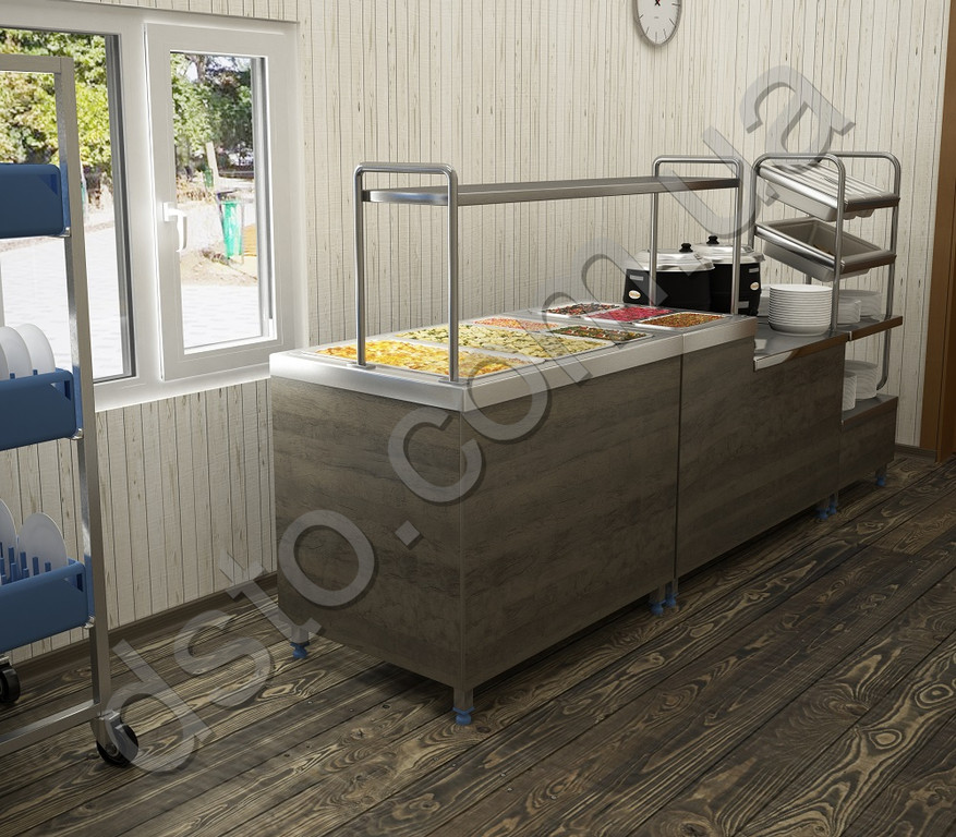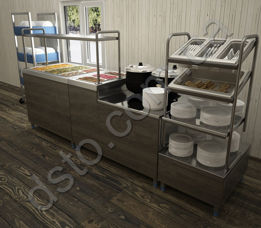 После долгого перерыва спешим поделиться с вами работой по оснащению кухни для питания переселенцев в рамках деятельности Благотворительного фонда "Каритас Коломыя". По стечению обстоятельств у нас появилась возможность оперативно приехать на объект в Коломыю для замеров и обсуждения концепции проекта. В процессе обсуждения приняли решение реализовать элементы линии с декоративной отделкой , что отображено в подготовленном нами дизайн-проекте. В одном элементе линии совмещена выкладка салатов (нейтральный принцип хранения, в столешнице вырез под GN1/1) и раздача первых блюд (столешница с занижением под супницы). Из-за ограниченной длины в сервис-стойке для приборов добавлены полки хранения посуды. Концевым элементом линии является передвижной стеллаж с кассетами посудомоечной машины для удобства сбора грязной посуды. Также нами предложена новая планировка оборудования и мебели на кухне, составлено техническое задание для корректировки имеющихся коммуникаций. При перепланировке кухни частично была использована мебель из нержавейки, которая ранее находилась на объекте, удачно вписавшись в новый проект. Финальным этапом осуществлен монтаж пароконвектомата, плиты индукционной, картофелечистки, посудомоечной машины. Теперь работы на кухне и в зоне линии раздачи стали значительно эрногомичней, а соответственно и обеспечить питанием нуждающихся будет продуктивней и проще. А в этом и была основная задача, с которой мы совместно справились.